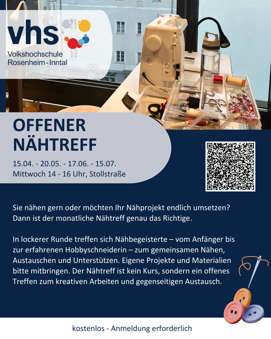 Die vhs Rosenheim–Inntal bietet Ihnen viele Möglichkeiten, Neues zu entdecken, dazuzulernen und mit anderen in Kontakt zu kommen. Wir laden Sie ein, unsere vielfältigen Programme kennenzulernen und gemeinsame Erlebnisse zu schaffen, die Freude machen und den Alltag bereichern.